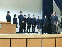 1月8日(木)予選を勝ち抜き関東選抜大会に出場するハンドボール部・レスリング部・空手道部の壮行会を実施し、各部から大会に向けての決意表明がありました。練習の成果を発揮できるように応援しています。頑張ってください。